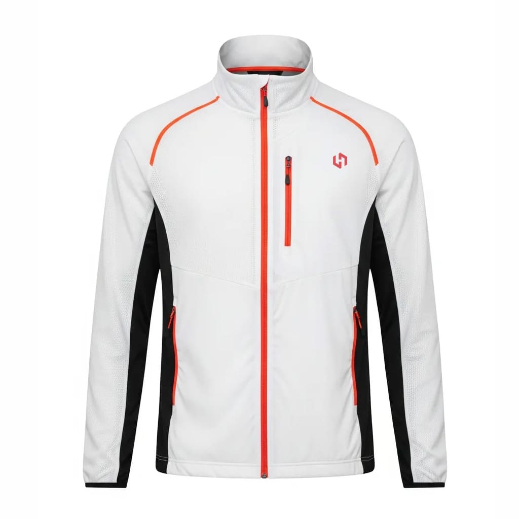 Made from high-quality polyester or performance fabric, this jacket is lightweight, breathable, and durable. It helps regulate body temperature while allowing free movement during workouts and sports activities.